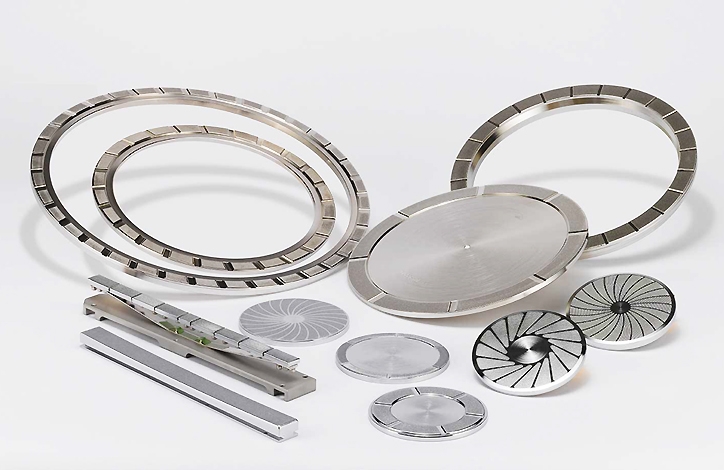 Electronic tools 반도체 칩 및 디스플레이, LED 제조에 사용되는 공구 입니다. CMP PAD CONDITIONER: Wafer를 평탄화 하기위한 CMP 공정에서 패드의 표면을 최적의 작동 상태로 유지하기 위해 사용되는 공구 BACK GRINDING WHEEL: Wafer를 packaging 공정 및 특성에 맞는 두께로 만들기 위해 wafer의 뒷면을 가공하는 공구 SAWING BLADE: Wafer를 Die chip 형태(개별 반도체 칩)로 만들거나, 개별 반도체 칩으로 분리가 가능하게 만드는 공정입